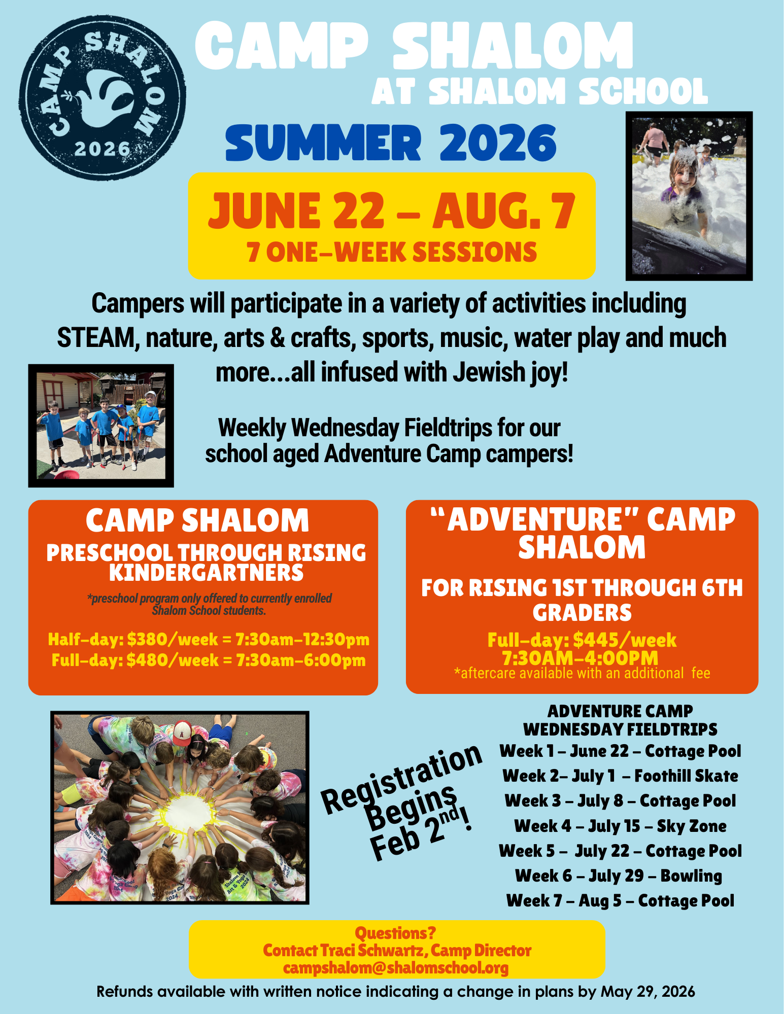 Join us this summer for Camp Shalom for students rising into grades 1 through 6!